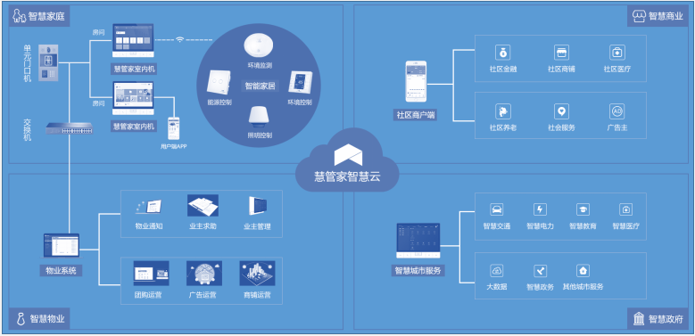 系統(tǒng)平臺(tái)可以實(shí)現(xiàn)社區(qū)公共安全管理智慧化,通過(guò)先進(jìn)的物聯(lián)網(wǎng)技術(shù)和智能安防設(shè)施,實(shí)現(xiàn)城市的數(shù)字化管理及服務(wù)。同時(shí)實(shí)現(xiàn)社區(qū)日常管理智能化,社區(qū)服務(wù)標(biāo)準(zhǔn)化、產(chǎn)品化,為物業(yè)公司打造多樣化的運(yùn)營(yíng)平臺(tái),全面提升物業(yè)管理效率。